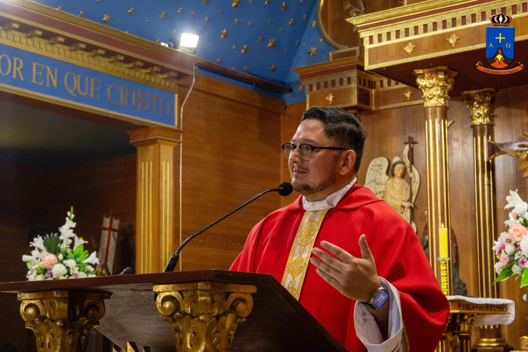 La celebración fue presidida por el padre Sebastián Encalada quien en su prédica destacó las palabras del Señor escuchadas en el evangelio de San Lucas, donde el Señor nos llama a dejar las cosas pasajeras y abrazar lo definitivo, acumulando tesoros en el cielo ya que nuestro discipulado esta marcado por el peregrinaje de este mundo a los brazos del padre. Además llamó a tener este estilo evangélico de estar constantemente en actitud de vigilancia, es decir, reconocer la presencia amorosa de Dios que siempre nos llama. Este camino de permanente actitud de vigilancia la ha tenido nuestro hermano San Lorenzo quien encontró sentido en todo esto hasta dar su vida por el bien de los más desfavorecidos donde gustó y saboreó las cosas del Señor.