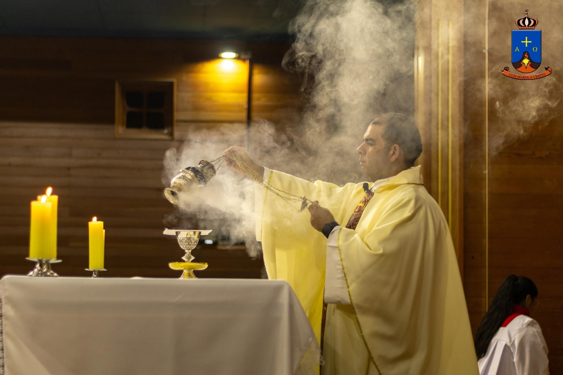 La Eucaristía fue presidida por nuestro rector el Padre Eduardo Parraguez, quien en su prédica invitó a mirar el interior para esconder la joya más preciosa que tiene el reino de los cielos: al mismo Jesús, quien en su parábola enseña que el reino de los cielos se parece a un tesoro escondido. Dispone a dos hombres, quienes venden todo para poder poseer aquel tesoro de gran valor. Y este aprendizaje interpela la vida personal y comunitaria donde debemos ser capaces de mirar a Jesús como esta joya escondida en el campo de nuestro interior y limpiarlo de todo aquello que nos aleja de su gracia.