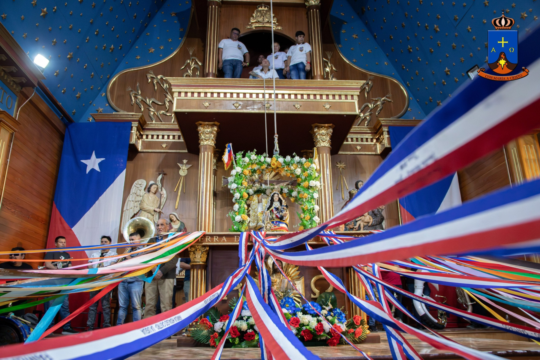 Al llegar la procesión se procedió a subir la bendita imágen peregrina de nuestra Chinita del Carmen a su camerín con cintas, expresando la fe de este pueblo sencillo que pide a Dios nos conduzca a ser una nación donde todos puedan ser reconocidos y podamos sentarnos en una misma mesa para compartir el mejor de los frutos, al Señor de la vida.