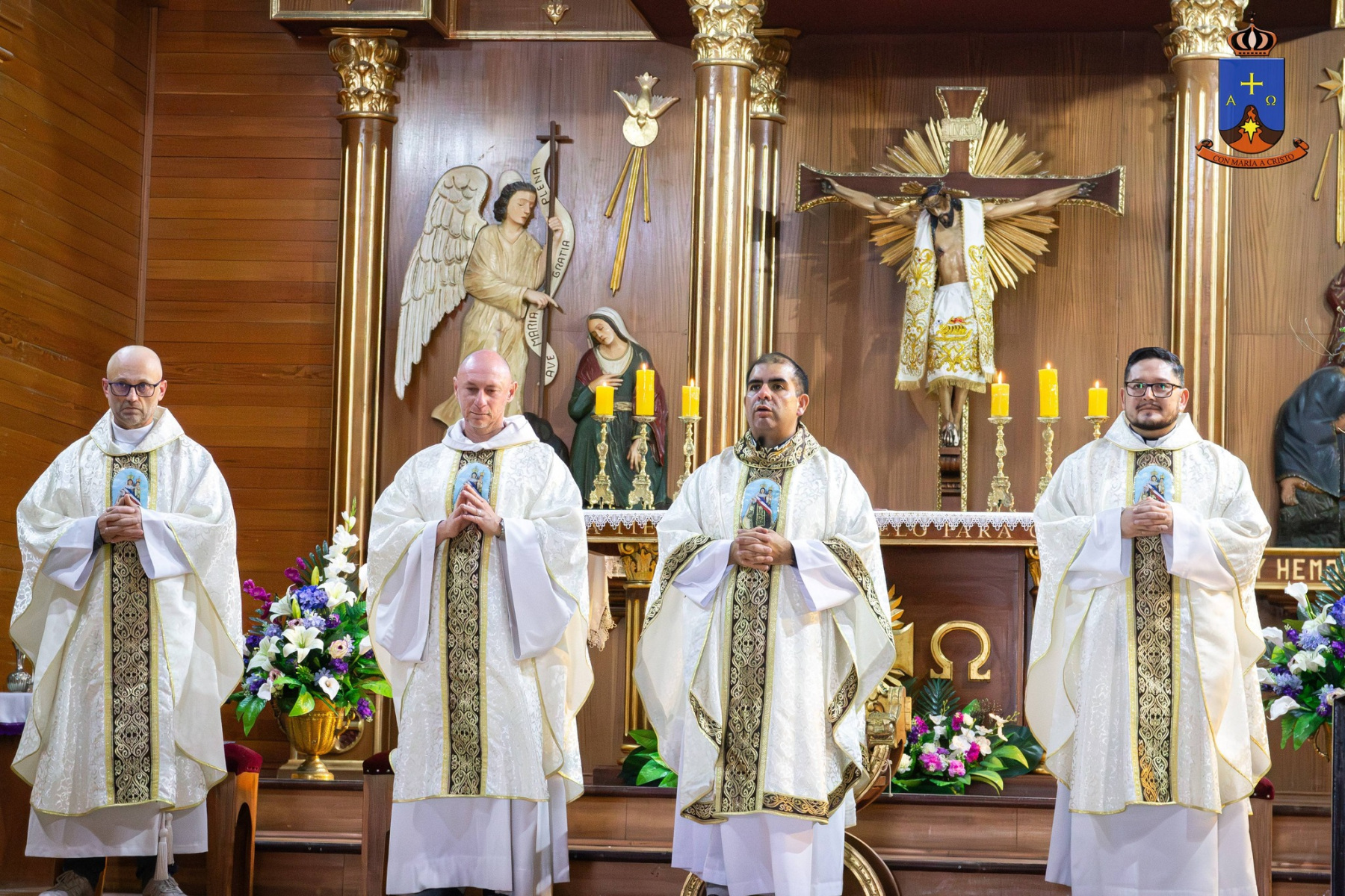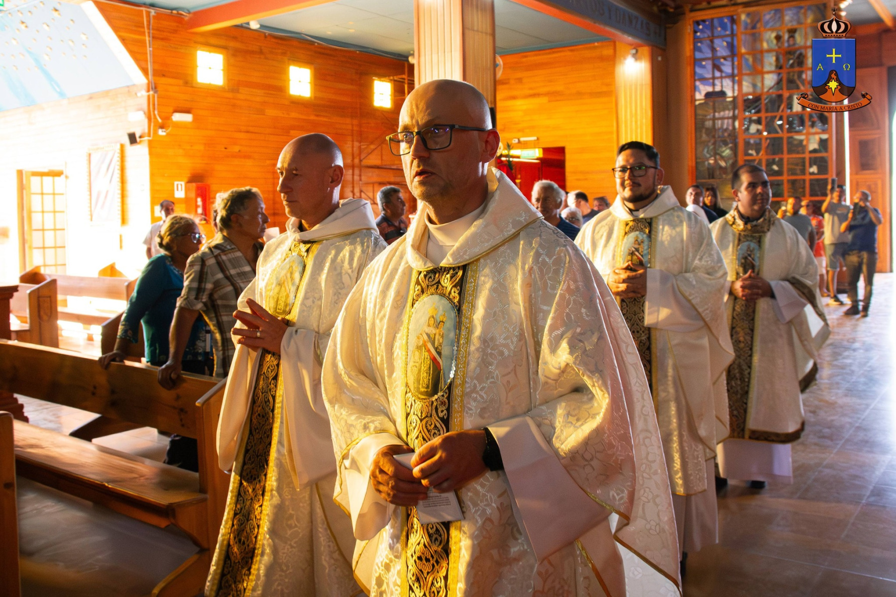 Al llegar la procesión al templo entre aclamaciones y oraciones a María, se inició la Santa Eucaristía presidida por nuestro Rector el Padre Eduardo Parraguez, acompañada por el padre Sebastián Encalada y los pbros. Cristian Schoeder a cargo de la parroquia San José de Pozo Almonte y el padre Carol Ganger párroco de la comunidad del Santísimo Redentor de Huara quienes junto a sus comunidades de feligreses y peregrinos rindieron culto a la Madre del Señor y agradecieron las infinitas gracias recibidas durante este bello Mes.