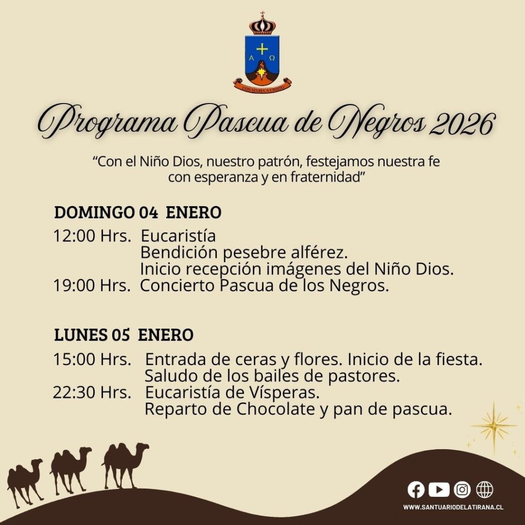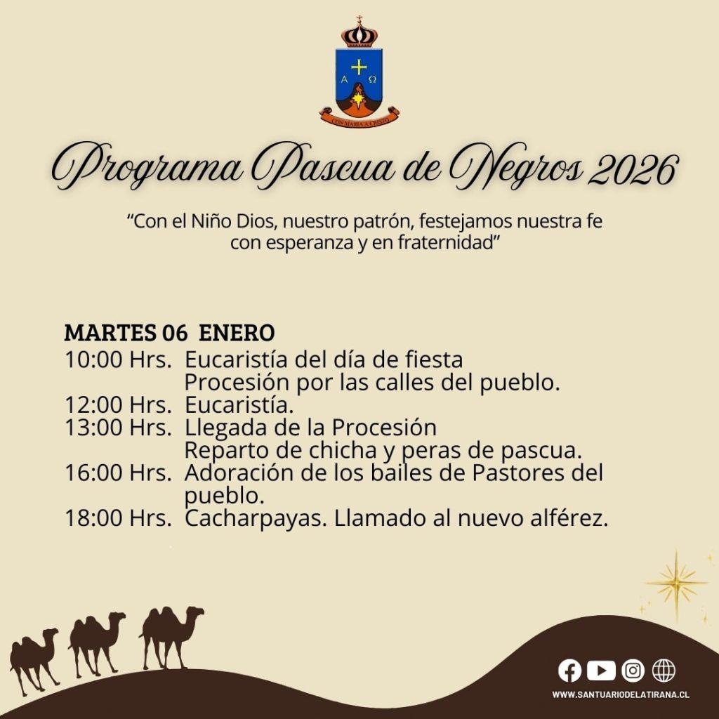Con alegría les invitamos a vivir juntos la Epifanía del Señor, celebrada también como la tradicional Pascua de los Negros 2026, un encuentro de fe donde recordamos la manifestación de Jesús al mundo entero, luz que guía nuestros pasos y esperanza que renueva nuestros corazones.