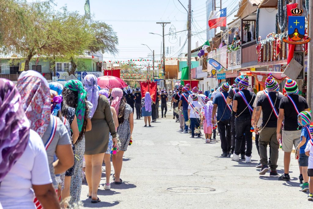 Como cada año, la celebración comenzó en las puertas de la Rectoría del Santuario, donde los alférez se dirigieron a buscar al clero para iniciar los ritos propios de esta tradicional fiesta. Posteriormente, se trasladaron al parabién para encontrarse con los bailes de pastores y, desde allí, avanzar en procesión hacia la Cruz del Calvario. En ese lugar, presidió la celebración nuestro Obispo, Monseñor Isauro Covilli Linfati, acompañado por el Rector del Santuario, Padre Eduardo Parraguez Hernández, junto al clero proveniente de distintos puntos del Norte Grande, quienes han llegado para acompañar esta fiesta dedicada al Emanuelito.
