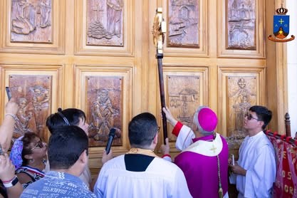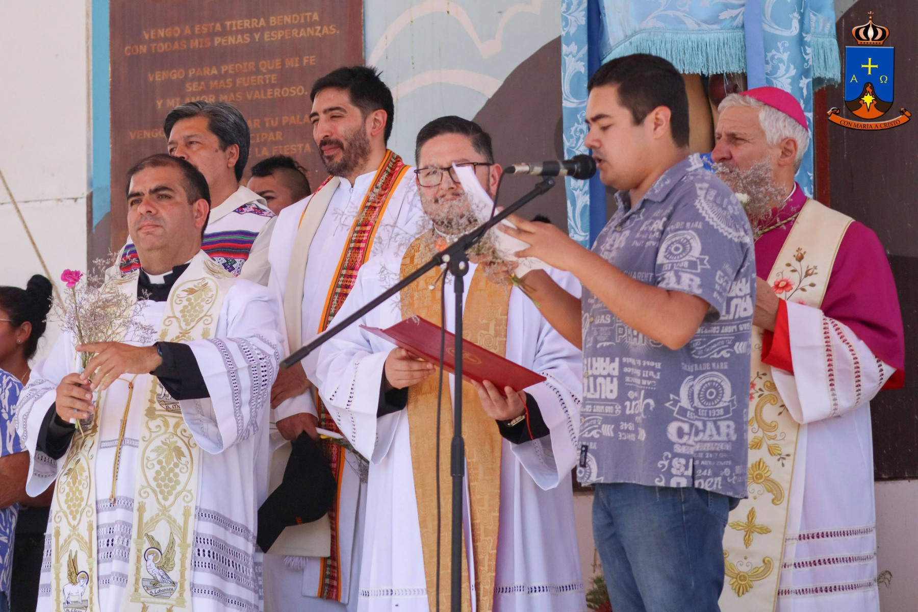 Al llegar la procesión al templo, Monseñor Isauro abrió solemnemente las puertas como signo de apertura oficial de esta fiesta. Con la imagen del Niño Dios en sus manos, se dirigió al altar para impartir la bendición a todos los presentes y, posteriormente, depositó la imagen en la cuna del pesebre. Con este gesto, se dio inicio a las entradas de los bailes religiosos, que expresaron su fe y devoción a través de cantos y danzas de adoración al Dios con nosotros.