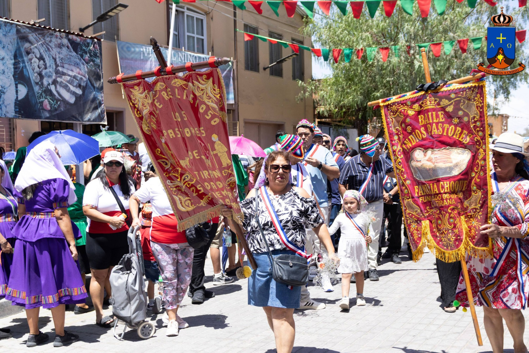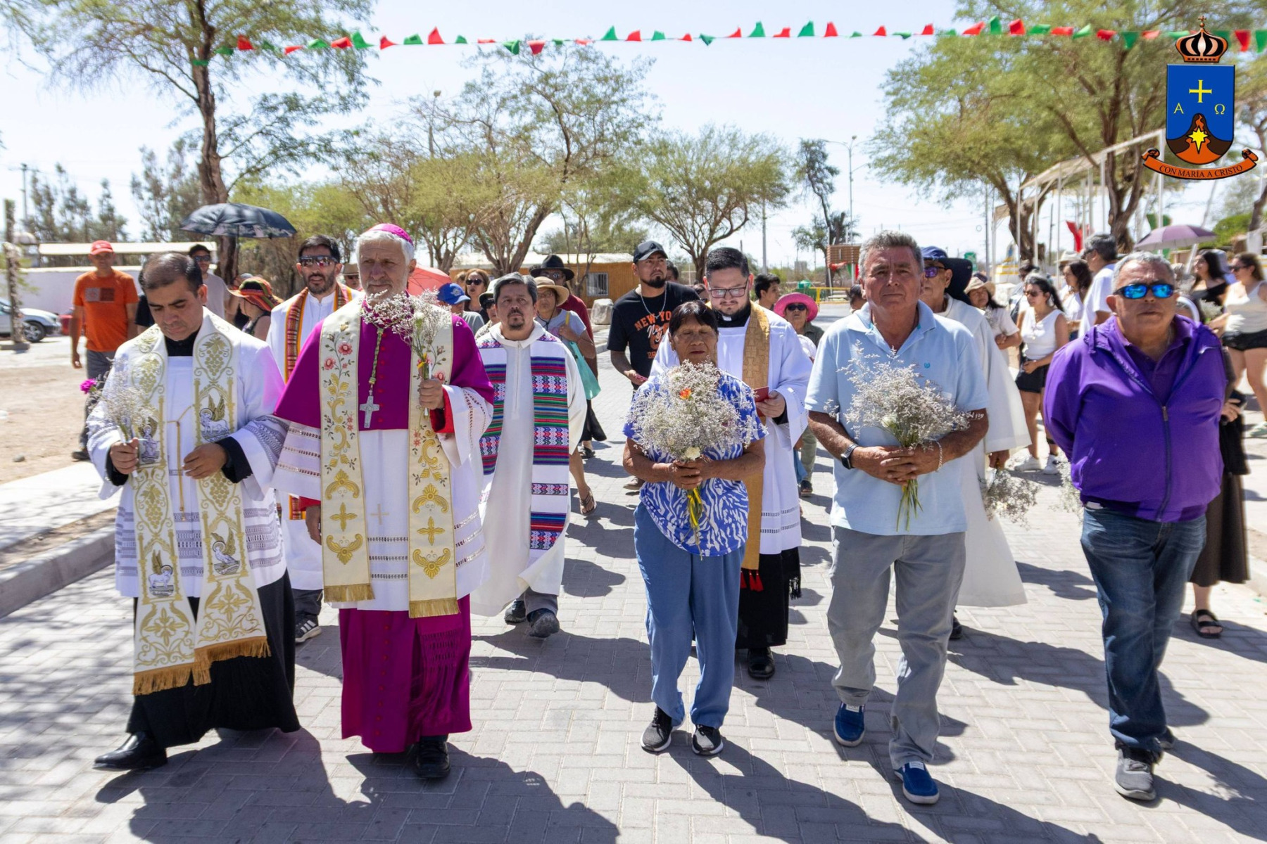 Como cada año, la celebración comenzó en las puertas de la Rectoría del Santuario, donde los alférez se dirigieron a buscar al clero para iniciar los ritos propios de esta tradicional fiesta. Posteriormente, se trasladaron al parabién para encontrarse con los bailes de pastores y, desde allí, avanzar en procesión hacia la Cruz del Calvario. En ese lugar, presidió la celebración nuestro Obispo, Monseñor Isauro Covilli Linfati, acompañado por el Rector del Santuario, Padre Eduardo Parraguez Hernández, junto al clero proveniente de distintos puntos del Norte Grande, quienes han llegado para acompañar esta fiesta dedicada al Emanuelito.
