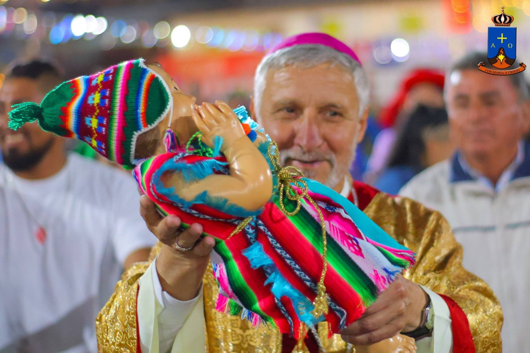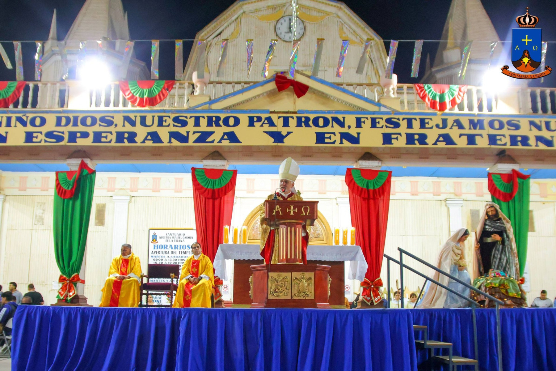 Durante su prédica, el Obispo invitó a orar por la paz, especialmente en los lugares que sufren conflictos, y tuvo palabras de cercanía con nuestros hermanos venezolanos, que hoy atraviesan una profunda crisis social, para que la luz del Emanuelito acompañe y consuele a su pueblo.