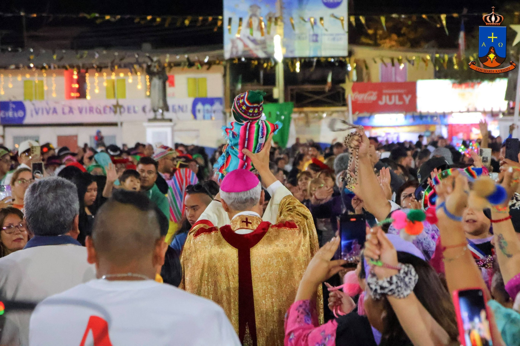 Cientos de peregrinos se congregaron en la explanada del Santuario para participar de la tradicional Eucaristía de Vísperas, en la espera de la solemnidad de la Epifanía del Señor. La celebración fue presidida por nuestro Obispo, Monseñor Isauro Covili Linfanti, acompañado por el Rector del Santuario, padre Eduardo Parraguez Hernández, junto al clero proveniente de distintos lugares del Norte Grande, quienes acompañaron esta fiesta dedicada al Emanuelito.