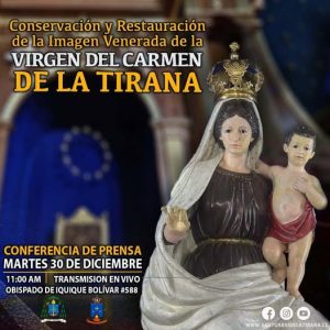 CONFERENCIA DE PRENSA SOBRE LA CONSERVACIÓN Y RESTAURACIÓN DE LA IMÁGEN VENERADA DE LA VIRGEN DEL CARMEN DE LA TIRANA